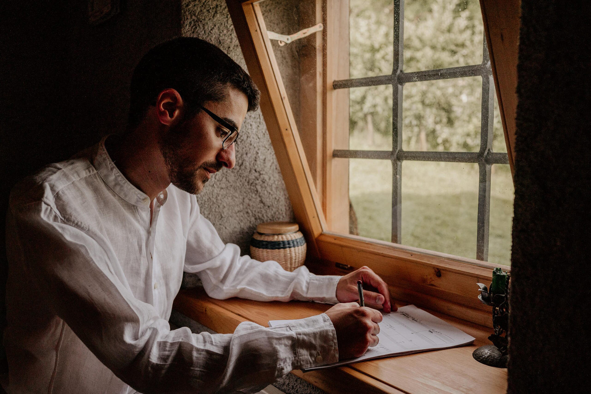 Sono nato in una famiglia dove la musica è sempre stata molto presente nonostante i miei genitori non abbiano mai intrapreso studi musicali. Entrambi cantano nel coro parrocchiale e mio padre da più di quarant’anni canta anche in un coro amatoriale maschile che si occupa in particolare di repertorio popolare. Sin da piccolo ho assorbito quindi la passione per la musica e in particolare per la musica corale, condivisa anche con mia sorella Lorenza. Assieme abbiamo iniziato gli studi di strumento in una scuola musicale, contemporaneamente cantavamo nel coro della parrocchia e successivamente nel coro del Liceo musicale Bonporti di Trento dove abbiamo avuto occasione di affrontare pagine importanti di repertorio corale come i Requiem di Mozart, Fauré e Rutter, e meravigliose pagine di Cecilia Vettorazzi, direttrice del coro nonché raffinatissima compositrice, che ha dato una forte impronta al mio percorso musicale. I primi esperimenti compositivi sono stati quindi rivolti al coro e tutt’ora questo organico prevale sugli altri.